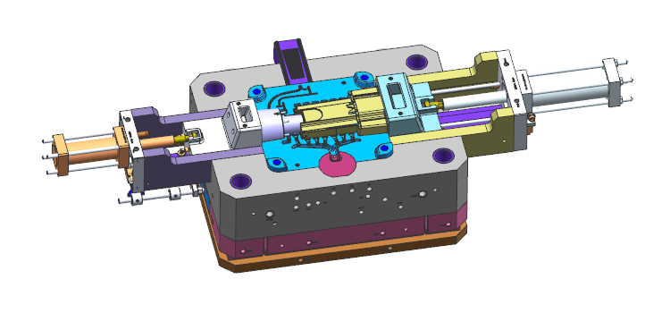 產(chǎn)品內(nèi)側(cè)的抱緊力較大,為避免液壓油缸出現(xiàn)拉不動(dòng)而抱緊在行位上,模具設(shè)計(jì)的結(jié)構(gòu)采用機(jī)械力先將行位抽出一部分來避免該問題的發(fā)生。