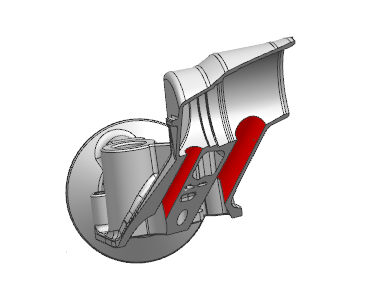 模具上斜行位位置放置鋼預埋件壓鑄及后模大角度斜滑塊
